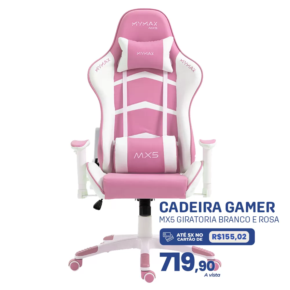 Cadeira Gamer MX5 Giratoria Branco e Rosa